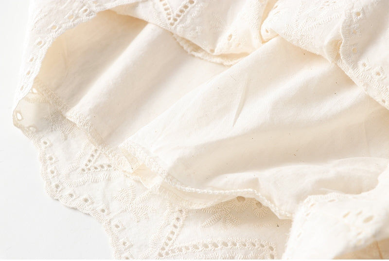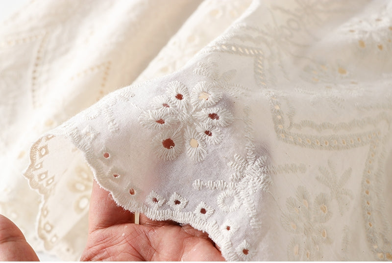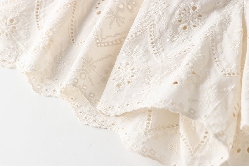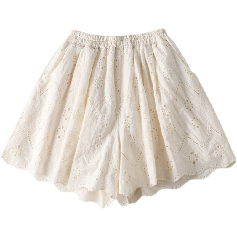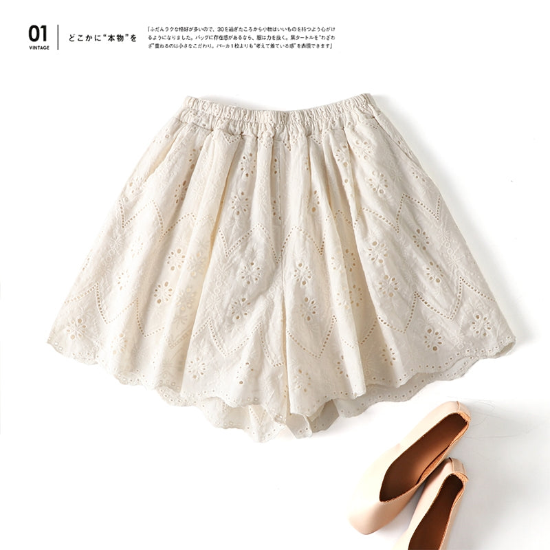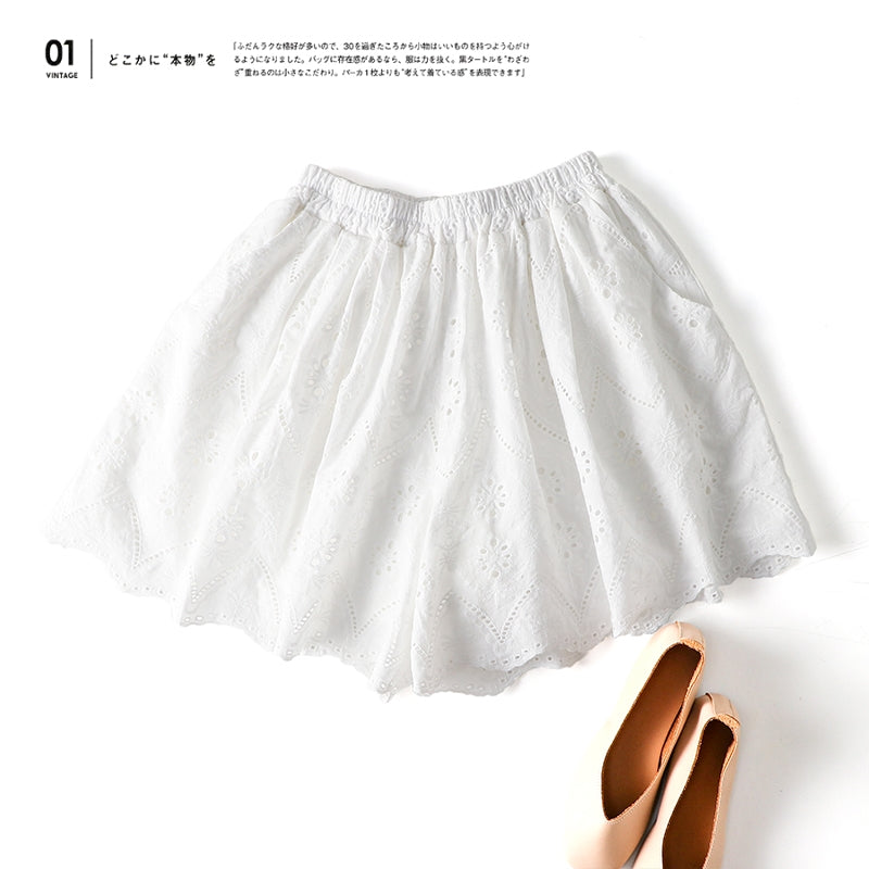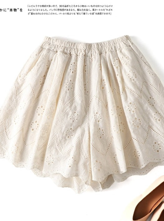 Cotton Eyelet Lace Shorts With Lining & Pockets