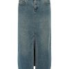 - Mid rise denim maxi skirt